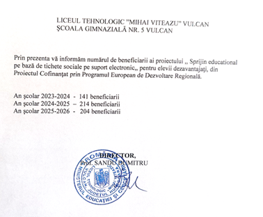 - Reducerea riscului de abandon școlar și a timpului de lucru al părinților pentru achiziția materialelor.
